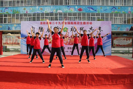 活動(dòng)儀式上,縣特殊教育學(xué)校學(xué)生和縣音樂家協(xié)會(huì)文藝志愿者分別為觀眾表演了精彩的文藝節(jié)目??h特殊教育學(xué)校的學(xué)生首先表演了舞蹈《海草舞》,文藝志愿者周紅春演唱了歌曲《愛的奉獻(xiàn)》、《天南地北淮陽人》、李泉稼小朋友演唱了豫劇《洼洼地里好莊稼》,淮陽特殊教育學(xué)校學(xué)生表演了節(jié)目《感恩的心》。精彩的表演贏得了現(xiàn)場(chǎng)觀眾的陣陣掌聲。