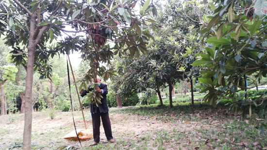 5月20日早上,在周口中心城區(qū)文昌大道與府苑街交叉口西側(cè)的街頭小游園內(nèi),一位老人正在采摘枇杷樹上還未完全成熟的枇杷果。記者看到,老人已采摘了一些枇杷果,地上落了不少樹葉。