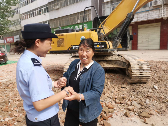 “創(chuàng)衛(wèi)不留死角,想盡辦法也要給市民良好的出行體驗。”市公安局召開黨委會議專題研究建新路西段附近居民出行問題,發(fā)出“克服困難、自掏腰包、推倒違建、平整道路”的指令,號召全警幫助居民實現(xiàn)安全出行?!斑@些民警、社區(qū)干部都跟我的孩子差不多大,看著他們頂著大太陽清理雜物,夜里還在加班加點工作,我給他們說‘孩子來家喝口水,吃個飯’他們都笑著拒絕了。真感謝他們,也心疼他們?!闭f起“創(chuàng)衛(wèi)”以來,市公安局民警和社區(qū)干部的工作,70多歲的智老太眼含熱淚。