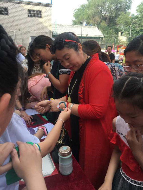 5月25日上午,沈丘縣中國結(jié)第七代傳承人李海花走進槐店鎮(zhèn)回民小學,和學?!爸袊Y(jié)”手工編織興趣班的20名學生舉行“愛心義賣,情暖校園”主題活動。不到半小時,100多件作品被搶購一空還預定了很多。據(jù)悉,這次義賣共得到1200余元,將全部捐給“槐店鎮(zhèn)中心學校教育基金”,用來資助該鎮(zhèn)經(jīng)濟困難師生、獎勵優(yōu)秀教師和學生、資助教育教研等重大活動項目。