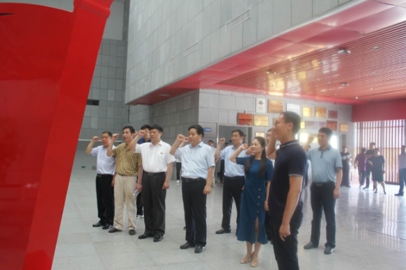 在扶溝縣委常委、統(tǒng)戰(zhàn)部長曹來凌,副縣長史凱歌等的陪同下,李飛一行首先參觀了吉鴻昌將軍紀念館,并在館內舉行莊嚴的重溫入黨宣誓儀式,接受愛國主義教育和革命精神洗禮。