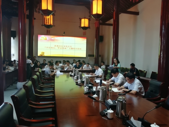 6月25日下午,鹿邑縣委辦公室黨總支開展“不忘初心、牢記使命”主題黨日活動。縣委書記梁建松,縣委常委、辦公室主任侯自峰以普通黨員身份參加活動,并帶頭繳納了黨費??h委辦公室常務副主任、黨總支書記胥茂森主持主題黨日活動。縣委辦公室全體黨員參加活動。