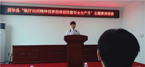 今年6月是全國第18個“安全生產(chǎn)月”,為牢固樹立安全發(fā)展理念,增強(qiáng)全民安全生產(chǎn)意識。6月28日下午,西華縣舉辦“踐行訓(xùn)詞精神擔(dān)責(zé)擔(dān)難擔(dān)險暨安全生產(chǎn)月”主題演講比賽,來自應(yīng)急管理系統(tǒng)的15名選手齊聚賽場,以一個個生動的故事和深入人心的道理,深刻闡述了“安全”的內(nèi)涵。