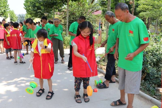 敬老院的老人們也不甘落后,孩子們表演結(jié)束后,老人們也向孩子們表演了拿手絕活——抖空竹。只見,小小的空竹在老人們手中忽高忽低、時(shí)快時(shí)慢,各種令人嘆為觀止的花樣動(dòng)作,猶如行云流水、連綿不斷,引得孩子們齊聲叫好。學(xué)生們紛紛上前,從老人手里接過空竹,一邊討教一邊聯(lián)系,歡聲笑語不時(shí)在敬老院上空回蕩。
