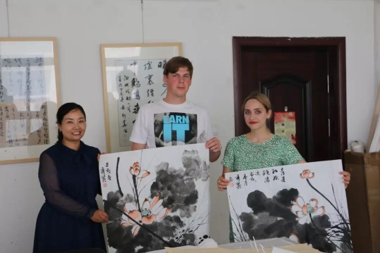 鹿邑本土畫家劉龍飛畫的花鳥栩栩如生引起俄羅斯青年畫家們的嘖嘖稱嘆。兩位青年畫家通過翻譯告訴記者,中國畫歷史悠久、博大精深,看到兩位老師的畫作形神兼?zhèn)?,氣韻生動,真是不虛此行,感謝贈送的佳作,他們一定珍藏。據(jù)悉,本次活動他們將以國際藝術(shù)志愿者的身份、以西方人的視角描繪老子故里的美景,他們走進(jìn)明道宮、太清宮等景點實地寫生,并走美術(shù)學(xué)校為孩子們輔導(dǎo)繪畫并帶來世界名校的繪畫理念。