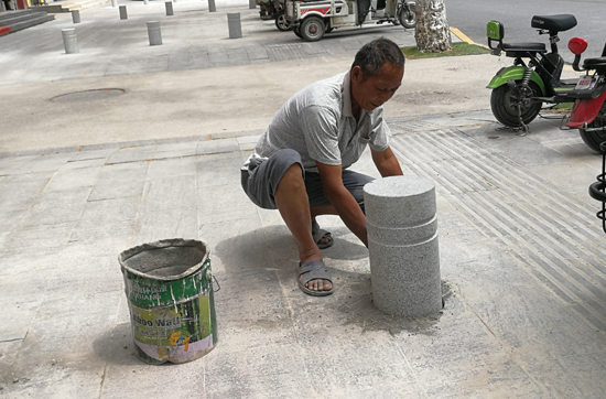 7月9日上午,工人正在八一大道兩側(cè)的人行道上安裝隔離石樁。為杜絕機(jī)動車占用人行道,相關(guān)部門近日陸續(xù)在中心城區(qū)多條主干道兩側(cè)的人行道上安裝隔離石樁。市民紛紛表示,安裝隔離石樁讓人行道更通暢了,也使城市更有序了。 記者 關(guān)秋麗 攝