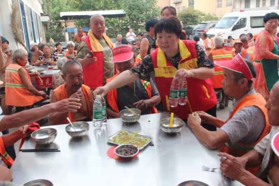 當(dāng)日早上,環(huán)衛(wèi)工人像往常一樣陸續(xù)來(lái)到愛心粥屋,300多人整整坐滿35桌??h總工會(huì)副主席李寧帶領(lǐng)干部職工拉著物資早早來(lái)到愛心粥屋。就餐中,縣總工會(huì)干部職工志愿者一桌一桌挨著發(fā)放毛巾和礦泉水,并叮囑他們?cè)诠ぷ髦袩崃诵_、擦擦汗、渴了喝口水。就餐結(jié)束后,李寧代表太康縣總工會(huì)向愛心粥屋捐贈(zèng)現(xiàn)金1萬(wàn)元現(xiàn)金,愛心粥屋發(fā)起人焦陽(yáng)光和環(huán)衛(wèi)工人代表郭師傅接收捐助并轉(zhuǎn)交財(cái)務(wù)開票入賬。