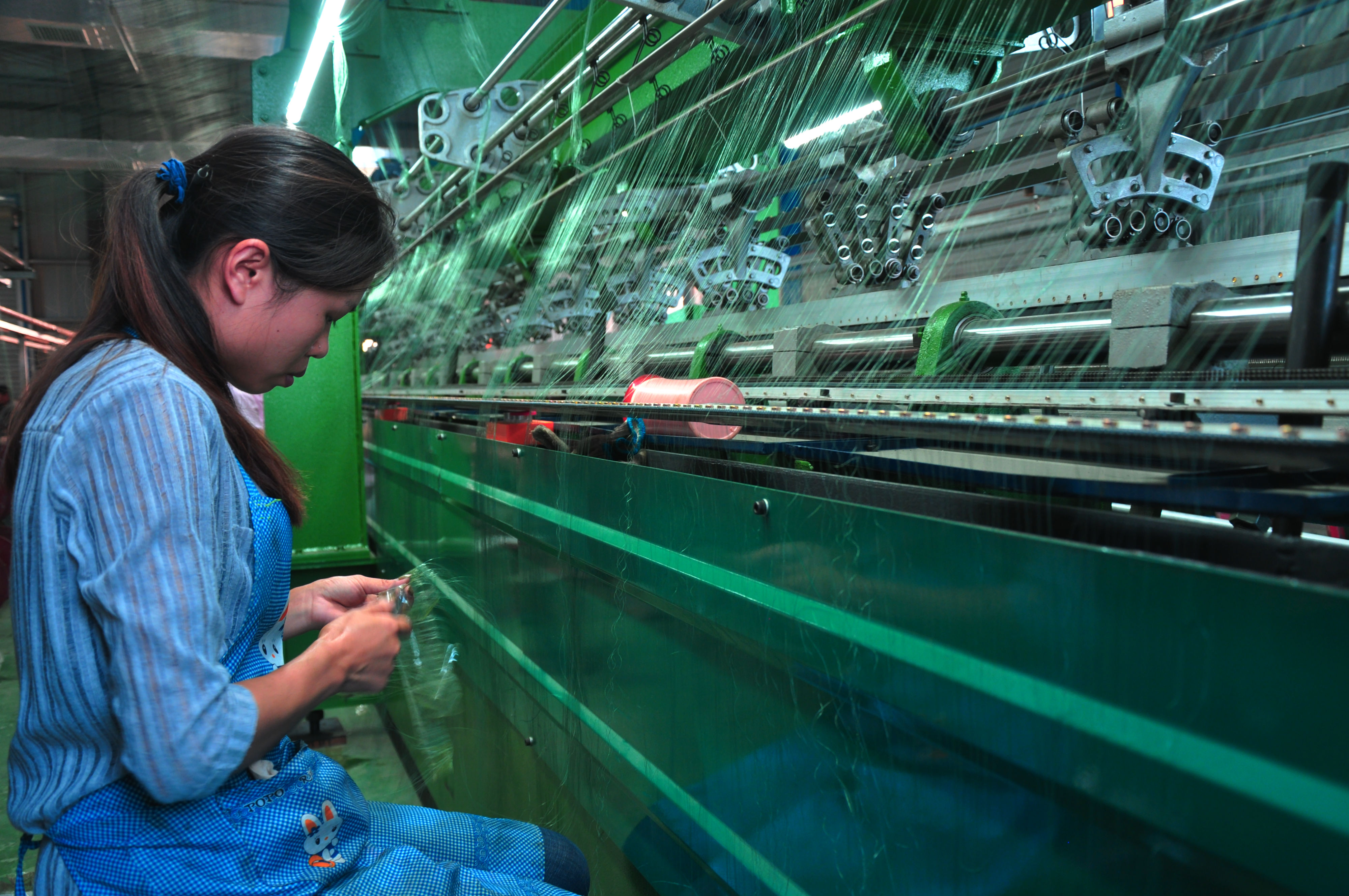 8月3日,一名女工正在魏集鎮(zhèn)張莊村“巧媳婦”企業(yè)——三聯(lián)漁網(wǎng)有限公司網(wǎng)布生產(chǎn)車間裁剪網(wǎng)線。據(jù)了解,該鎮(zhèn)大力發(fā)展?jié)O網(wǎng)編織、服裝加工、燈籠制造等產(chǎn)業(yè),把工廠辦到村頭,讓留守婦女和貧困群眾在家門口就能打工掙錢。
