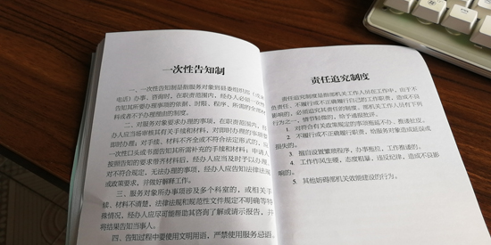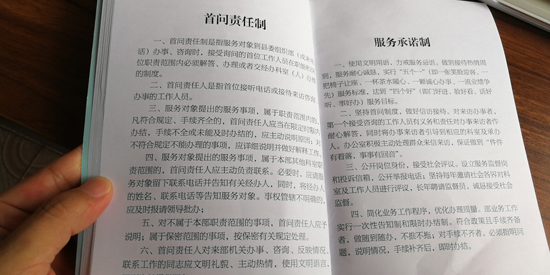 制度規(guī)定,服務(wù)對象到縣委組織部辦事、咨詢或來電時,首個接待的工作人員必須熱情、禮貌、耐心接待辦理或引領(lǐng)交給相關(guān)職責(zé)科室辦理。凡符合規(guī)定,手續(xù)齊全的,限時辦結(jié),手續(xù)不全未能及時辦結(jié)的,要主動向服務(wù)對象說明原因……縣委組織部常務(wù)副部長薛斌告訴記者:“通過扎牢制度的籠子,讓部機關(guān)工作人員做到一張笑臉迎客,一把椅子讓座,一杯茶水暖心,一顆誠心辦事,一流業(yè)績爭先的服務(wù)標(biāo)準(zhǔn),切實達(dá)到門好進(jìn)、臉好看、話好聽,事好辦的目的?!?/p>