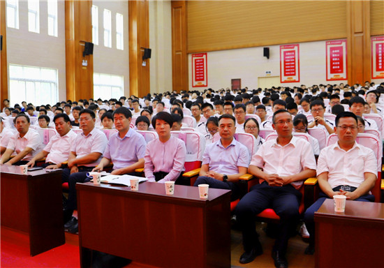 肖煒和與會領導同志分別向考入清華大學、北京大學的優(yōu)秀畢業(yè)生頒發(fā)獎金、贈送鮮花。鄲城一高黨委副書記白忠璽匯報了該校2019年高考成績,副校長張暉宣讀了學校表彰文件。