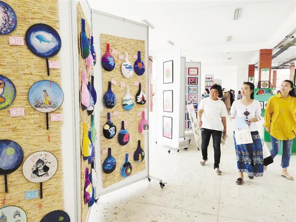鄲城縣數(shù)萬(wàn)名小孩子的暑假是多彩的,特色補(bǔ)習(xí)班、校園文化節(jié)、外出游山水等等,特別是校園文化節(jié),讓孩子們?cè)谑止ぶ谱?、音?lè)、圖畫、舞蹈等方面各顯所長(zhǎng),并讓孩子們開(kāi)闊了眼界。兩圖均為鄲城縣第二實(shí)驗(yàn)小學(xué)校園文化節(jié)現(xiàn)場(chǎng)。記者 徐松 攝