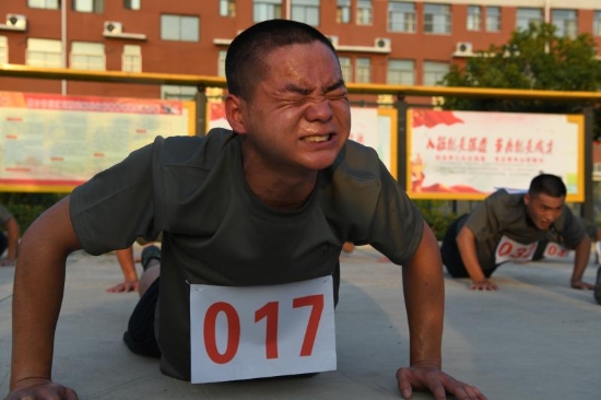 雖已立秋,但炎熱不減。當(dāng)天下午,記者在役前訓(xùn)練基地看到,預(yù)定新兵們?cè)趨^(qū)人武部教官的嚴(yán)密組織下,身穿整齊訓(xùn)練服裝,一絲不茍地進(jìn)行隊(duì)形隊(duì)列訓(xùn)練,汗水溻透脊背,訓(xùn)練熱情高漲,嘹亮的口號(hào)響徹訓(xùn)練場(chǎng)上空,他們以自己的一舉一動(dòng),展現(xiàn)出當(dāng)代軍人不怕苦不怕累的優(yōu)良傳統(tǒng)和立志報(bào)國(guó)的精神風(fēng)貌。