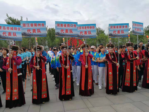 8月20日上午,2019年全國老年人持杖健走交流活動在內蒙古烏海市開幕,吸引了來自全國38支代表隊的652名持杖健走愛好者參加。我市老年人體育協(xié)會共選派10名愛好者參賽。圖為我市持杖健走愛好者正在進行戶外穿越項目的交流。
