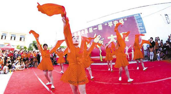 8月25日下午,市城鄉(xiāng)一體化示范區(qū)許灣鄉(xiāng)彭樓行政村文化廣場,舞姿婀娜,鼓聲雷鳴,笑語盈盈,該村千名農民以廣場舞大賽的形式,喜迎新中國70華誕和即將到來的中國農民豐收節(jié)。記者 梁照曾 攝