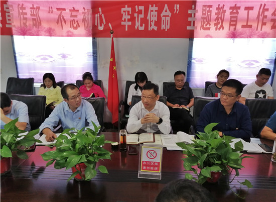 派駐縣委宣傳部主題教育巡回指導組組長盛旭同志參加會議進行指導。部機關(guān)全體人員參加會議。