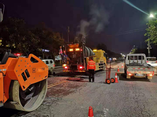 9月20日晚,記者在八一大道北段看到,道路綜合養(yǎng)護(hù)車、壓路機(jī)、運(yùn)輸車、圓周切割機(jī)等車輛和設(shè)備早已到位,市政工人正在施工(如圖)。從切割路面到恢復(fù)通車,一段路不到兩個(gè)小時(shí)就完成了任務(wù)。從外觀看,新更換的窨井蓋與以前的并無明顯差別。