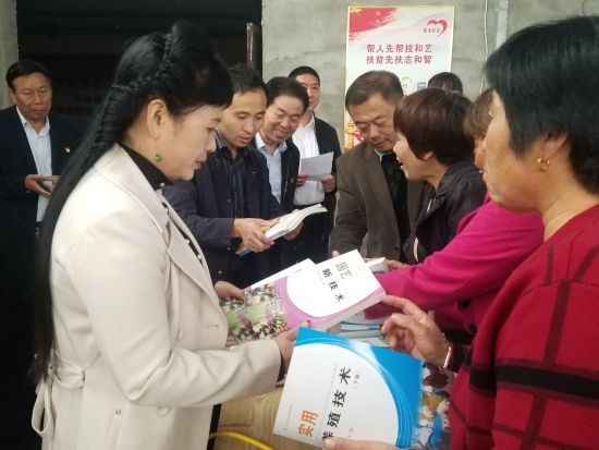 當(dāng)天,淮陽縣職業(yè)中專正在借助河南省科技特派員科技專項(xiàng)扶貧平臺,組織豆門鄉(xiāng)紅山村百余名建檔立卡貧困戶學(xué)員進(jìn)行為期15天的高效種植、健康養(yǎng)殖技術(shù)培訓(xùn)。在河南省科技特派員、周口職業(yè)技術(shù)學(xué)院趙慶楓博士的引薦下,民盟周口市委的楊彥濤委員、三支部主委王春華、文化教育支部主委任東升趕到現(xiàn)場為大家“傳經(jīng)送寶”。從種植增收致富到養(yǎng)殖奔小康,從關(guān)鍵技術(shù)到惠農(nóng)政策,從園林園藝技術(shù)到農(nóng)產(chǎn)品的銷售,專家們講得用心,學(xué)員們聽得認(rèn)真。
