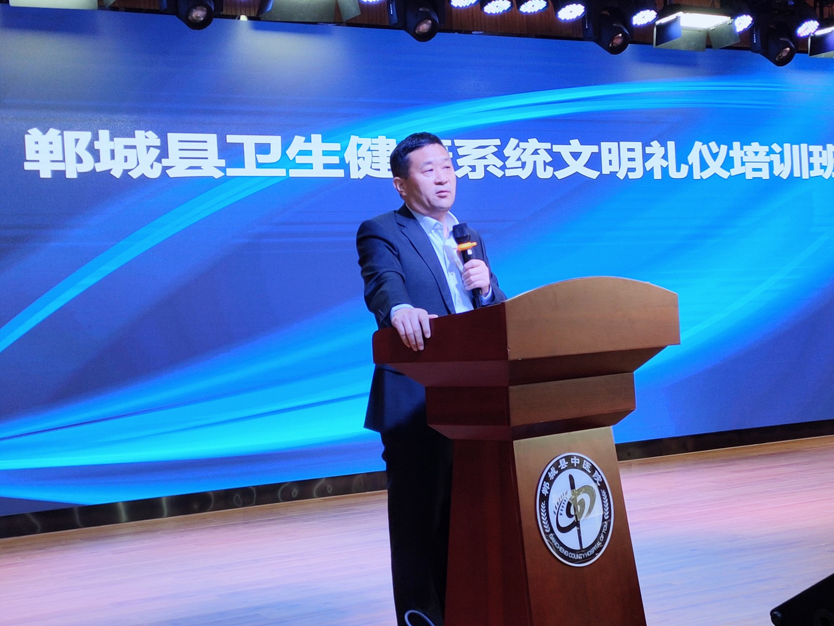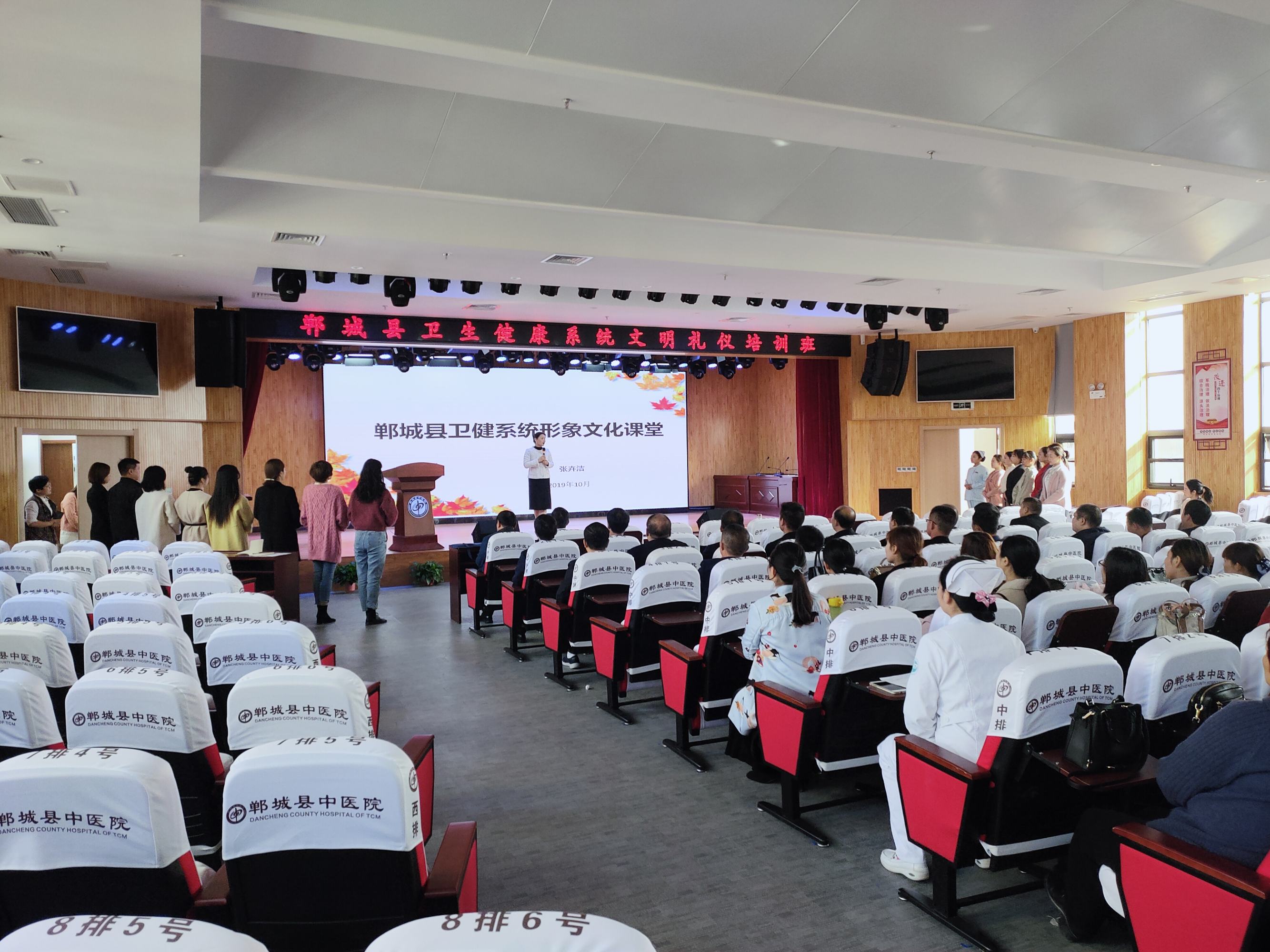 為一步提升全縣衛(wèi)健系統(tǒng)醫(yī)護(hù)人員綜合素質(zhì),打造鄲城衛(wèi)健系統(tǒng)形象新名片,10月28日,鄲城縣衛(wèi)健委在縣中醫(yī)院學(xué)術(shù)報(bào)告廳舉辦衛(wèi)健系統(tǒng)文明禮儀培訓(xùn)班。四家醫(yī)療健康服務(wù)集團(tuán)分管醫(yī)改、健康促進(jìn)、健康扶貧副院長(zhǎng)、護(hù)理部主任、護(hù)士長(zhǎng),各鄉(xiāng)鎮(zhèn)衛(wèi)生院院長(zhǎng)、護(hù)士長(zhǎng)和各單位選拔的講解員共計(jì)120多人參加了培訓(xùn)活動(dòng)。
