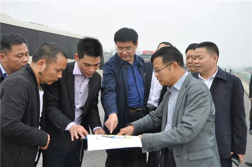 與會人員一起到商水城東新區(qū)參觀商水森林公園、八一大道等項(xiàng)目建設(shè)情況,并到北大附中商水分校項(xiàng)目擬選址現(xiàn)場察看。