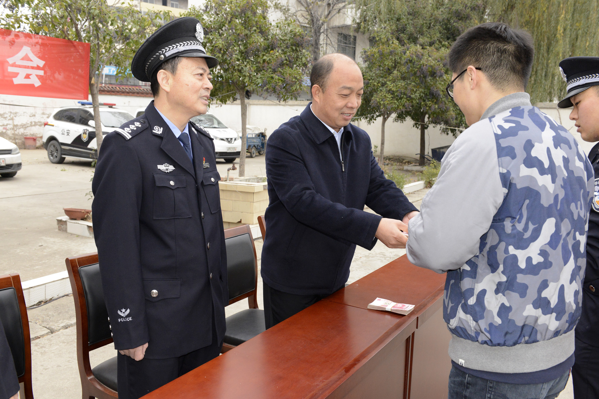 11月26日,扶溝縣公安局舉行公開退贓大會,將破案繳獲的190萬元贓款及摩托車、電動車、手機、金銀首飾等贓物分別發(fā)還給受害群眾??h委副書記、政法委書記詹凱出席活動并講話??h公安局刑偵大隊全體民警、部分被盜搶財物失主參加大會。會議由縣政府黨組成員、縣公安局黨委書記、局長田豪杰主持大會。