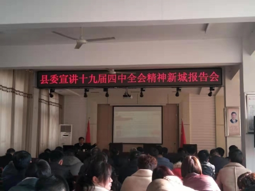 12月2日上午,鄲城縣委宣講團(tuán)成員邢偉到新城辦事處進(jìn)行十九屆四中全會(huì)精神宣講。新城辦事處黨工委書記王一博主持報(bào)告會(huì)。辦事處全體干部、直屬單位負(fù)責(zé)人、社區(qū)“三委”班子成員參加了報(bào)告會(huì)。