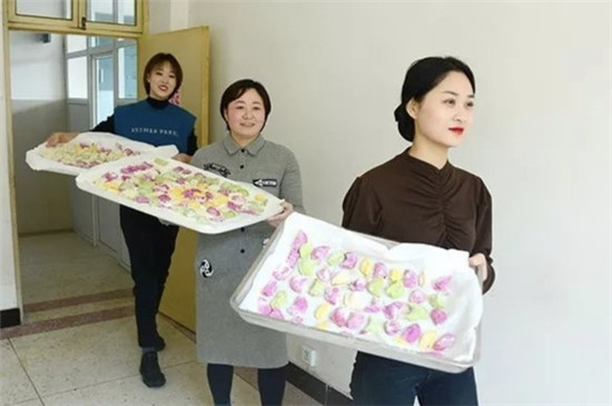 護師趙瑞本不該上班,可她一大早就起床,洗菠菜榨汁、和面,給過周日的孩子留了早飯就匆匆來到醫(yī)院;護士長趙鳳英一早打好餡,又榨了南瓜汁和面,帶著來到了單位;護師崔文芳上夜班,她提前準備好火龍果,和成面帶著,下了夜班換上衣服就干開了;護師謝夢媛孩子剛一歲多,身體不舒服,哭鬧不休,也丟給媽媽照顧,匆匆趕到醫(yī)院……