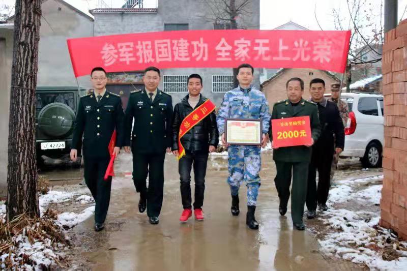 就在這樣一個(gè)瑞雪初降喜盼豐年的日子,穆店鄉(xiāng)四大王村熱鬧非凡。鹿邑縣人武部、退役軍人事務(wù)局、穆店鄉(xiāng)政府帶領(lǐng)96766部隊(duì)人員,專程來(lái)到從該村入伍的三級(jí)士官李龍家中,送上三等功喜報(bào)和慰問金。面對(duì)鄉(xiāng)親們羨慕的目光,李龍的母親陳秀英興高采烈地說(shuō):“俺要叮囑兒子繼續(xù)在部隊(duì)好好干,爭(zhēng)取再立新功!”