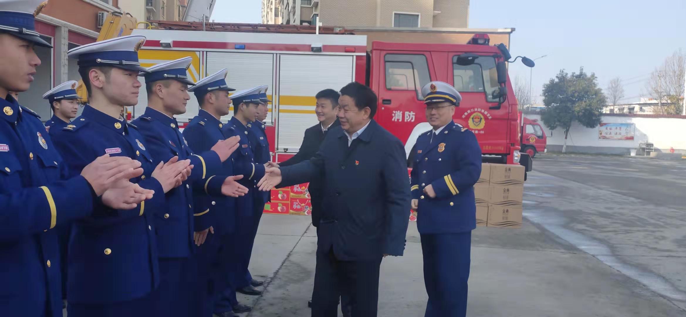 在川匯區(qū)消防救援大隊,李宗喜一行與指戰(zhàn)員們一一握手,并送上節(jié)日的祝福。李湛說,在過去的一年里,消防指戰(zhàn)員牢記使命、履職盡責(zé)、竭誠奉獻,是一支拉得出、沖得上、打得贏的鐵軍隊伍,為保障全區(qū)經(jīng)濟建設(shè)、社會穩(wěn)定和人民生命財產(chǎn)安全做出了突出貢獻。希望大家在新的一年里再接再厲,忠誠履職,為全區(qū)經(jīng)濟社會發(fā)展做出新的更大貢獻。