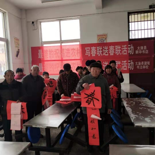 1月22日,在中原出版?zhèn)髅郊瘓F公司開展的“最美讀書聲”最美的祝?!捌哌M” 活動精神指導(dǎo)下,太康縣新華書店有限公司走進太康縣建南社區(qū)開展“書寫春天 溫暖社區(qū)”迎新春活動,為社區(qū)居民寫春聯(lián)、送春聯(lián)。