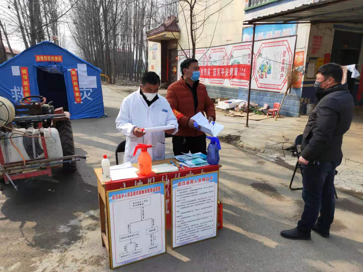 “正像鎮(zhèn)里宣傳的那樣,每村守好大門,每家守好小門,才能有效控制疫情的蔓延。他們這樣嚴(yán)格把守,都是為全村人好,我們非常理解,也很配合。路口有值班人員在,我們就放心了,他們就是俺村的守護神?!币粋€正在卡點測量體溫準(zhǔn)備外出的村民對記者說。