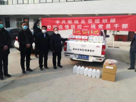 為認(rèn)真貫徹落實(shí)習(xí)近平總書記重要指示精神和中央、省委、市委組織部門決策部署,充分發(fā)揮專項(xiàng)黨費(fèi)在疫情防控工作中傳遞組織溫暖、解決實(shí)際困難、凝聚黨心民心的重要作用,2月5日,鄲城縣委常委、組織部長(zhǎng)侯磊帶領(lǐng)各位副部長(zhǎng)分頭行動(dòng),迅速將專項(xiàng)黨費(fèi)購買的酒精、消毒液、牛奶、方便面等有關(guān)物資援贈(zèng)到一線基層黨組織,并與各鄉(xiāng)鎮(zhèn)(辦事處、 高新區(qū))黨(工)委負(fù)責(zé)人進(jìn)行了交接,切實(shí)將組織的關(guān)懷溫暖傳遞到戰(zhàn)斗在疫情防控第一線的基層黨組織和廣大黨員干部,全力幫助支持基層黨組織開展疫情防控工作。