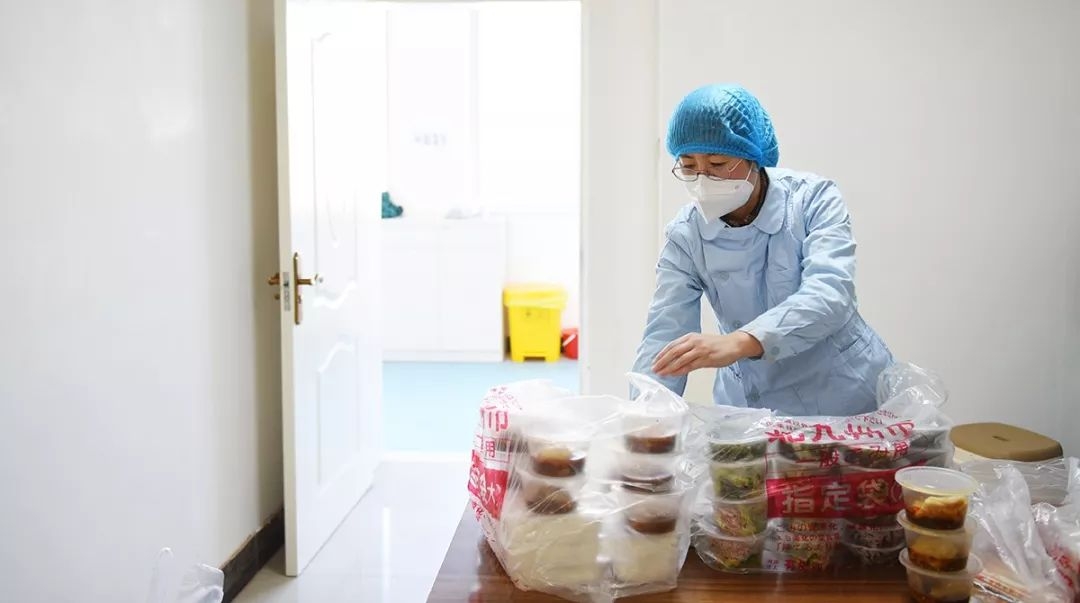又到了打飯的時(shí)間,鄲城縣人民醫(yī)院新冠肺炎定點(diǎn)治療隔離病區(qū)護(hù)士長(zhǎng)莊坤掰著手指一個(gè)一個(gè)向餐廳介紹病人的情況,用“了如指掌”來(lái)形容最恰當(dāng)不過(guò)。一邊說(shuō)話,她一邊熟練地將幾筐飯菜分類打包,每一份都用食品袋包好,哪是確診病人的,哪是留觀病人的,每一份上面都寫上名字,再由護(hù)士分別送去。