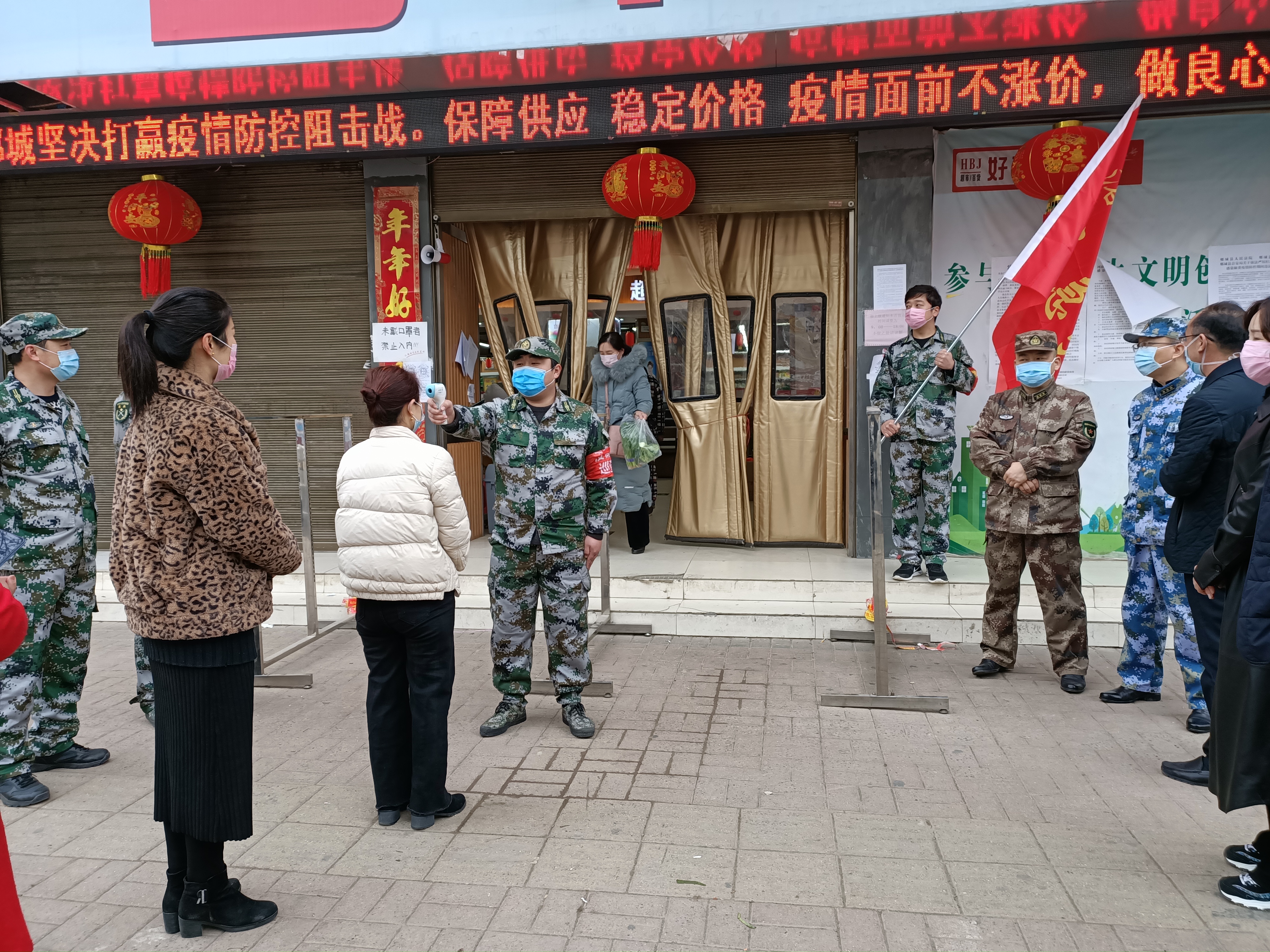 洺南街道基干民兵應(yīng)急分隊(duì)聞令而動(dòng)、聽令而行,在縣人武部和街道黨工委的號(hào)召下,迅速集合,主動(dòng)亮明身份、做表率、當(dāng)先鋒,把打贏疫情防控阻擊戰(zhàn)作為踐行初心使命、體現(xiàn)責(zé)任擔(dān)當(dāng)?shù)脑嚱鹗?,?zhàn)斗在疫情防控第一線。洺南街道位于縣城老城區(qū),也是縣城的商業(yè)區(qū),轄區(qū)道路較多,人員居住密集,流動(dòng)人口較多,疫情防控難度大、任務(wù)重。近期,隨著復(fù)工復(fù)產(chǎn)開始,人員管控難度進(jìn)一步加大,洺南街道基干民兵應(yīng)急分隊(duì)按照街道黨工委、武裝部的安排部署,34名基干民兵應(yīng)急分隊(duì)隊(duì)員全部分配到基層防控一線,與社區(qū)干部、志愿者、抽調(diào)人員一起聯(lián)合執(zhí)勤,重點(diǎn)協(xié)助轄區(qū)超市開展疫情防控,做好人員登記、體溫測(cè)量,秩序維護(hù),保障居民生活物資采購(gòu)的有序進(jìn)行。