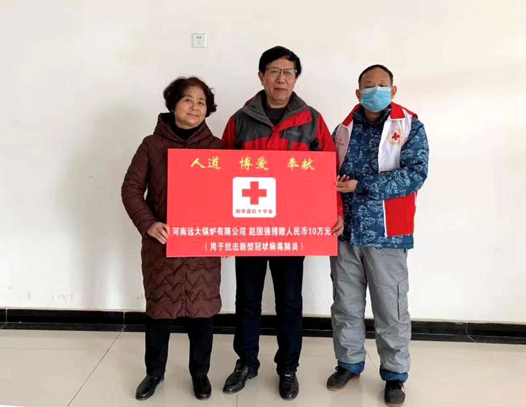 手術(shù)后在鄭州休養(yǎng)的河南遠大鍋爐黨支部書記趙國強,在看到廣大醫(yī)護人員、共產(chǎn)黨員紛紛申請到抗疫一線時,他躺不下了,不顧身體病痛,于1月31日和家屬專程趕回西華,向西華縣紅十字會捐款10萬元,用于抗擊新型冠狀病毒感染的肺炎疫情防控工作。