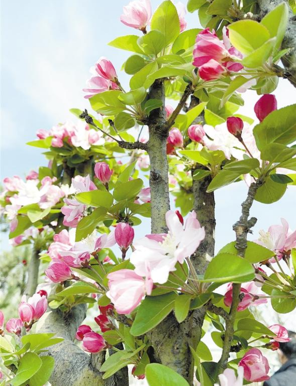 海棠花姿瀟灑、花開似錦,自古以來是雅俗共賞的名花,素有“花中神仙”“花貴妃”“花尊貴”之稱。海棠還有“國艷”之譽,在皇家園林中,它常與玉蘭、牡丹、桂花相配植,形成“玉堂富貴”的意境。