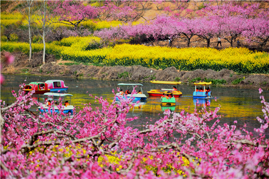 今年是黃橋迎來第十六屆桃花節(jié),鑒于疫情防控的需要,本屆桃花節(jié)不再聚眾舉辦,然而,燦爛如錦的黃橋,還是吸引著大批人們前來踏青賞花。3月24日,仲春的太陽火辣辣的,依然阻止不了人們前來觀賞桃花的好心情,游人如織,攜家?guī)Э?,呼朋引伴,漫游在桃花深處,桃花飛紅的潁河里,大人帶著孩子們踏著游船,暢游花海碧水之間,游船點(diǎn)點(diǎn),讓人嘆為觀止。