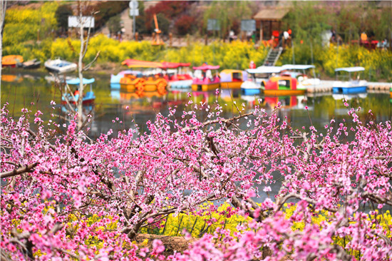 而在萬畝桃花深處,賞花的人們也是醉不知?dú)w。大人孩子們神采飛揚(yáng),追逐賞花,探幽覓芳,玩得很嗨!還有一個(gè)時(shí)尚的人們,在桃花深處玩抖音、玩直播、拍視頻,與天下網(wǎng)友共賞花海之美。