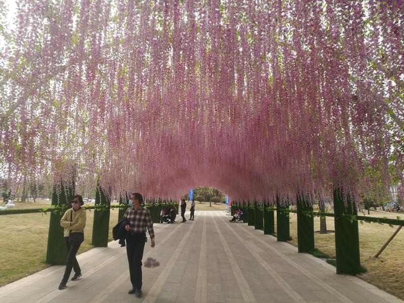 受疫情影響,清明小長(zhǎng)假,不少市民放棄了出行計(jì)劃。周口本地的游園、景點(diǎn)因此很是“火了”一把。近年來(lái),周口城市建設(shè)日新月異,踏青賞花,在家門(mén)口就能滿(mǎn)足了。圖為周口某綠色基地節(jié)日?qǐng)鼍啊?記者 李偉 攝
