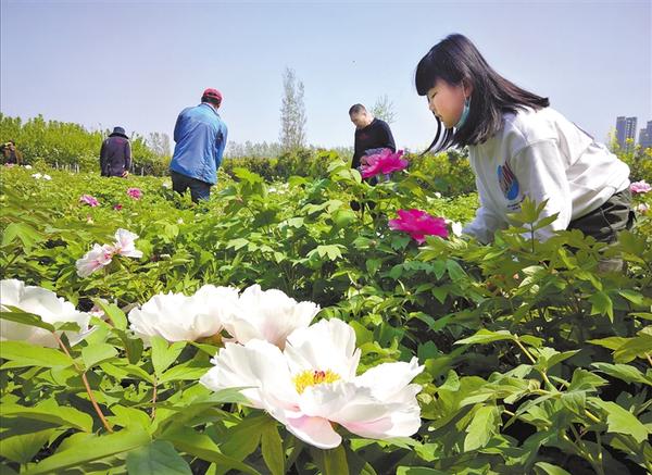 圖二 4月7日,在周口經(jīng)濟(jì)開發(fā)區(qū)淮河路辦事處小牛莊的一個花圃內(nèi),千余株牡丹相繼吐蕊,吸引不少市民前來賞花。近年來,我市不斷對中心城區(qū)進(jìn)行改建,著力提升城市的園林綠化水平,切實(shí)激發(fā)了城區(qū)周邊農(nóng)民種植花卉、草木的熱情。 記者 孫安平 攝