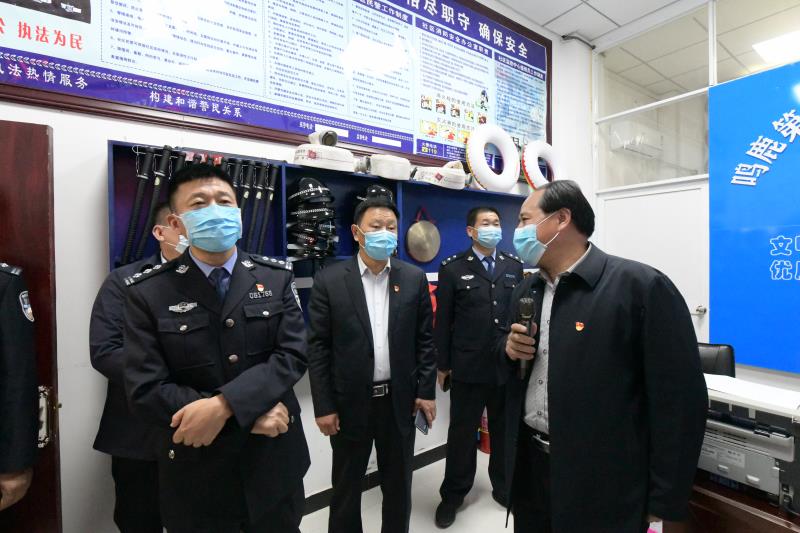 4月17日下午,鹿邑縣委副書記、政法委書記許四軍帶隊先后走進鳴鹿第一社區(qū)網(wǎng)格化管理點、賈灘鎮(zhèn)大宋警務(wù)室、楊湖口鎮(zhèn)李油坊警務(wù)室、邱集鄉(xiāng)大白警務(wù)室、高集鄉(xiāng)老王樓警務(wù)工作站、第一治安卡點、高集派出所,實地察看轄區(qū)社會治安防控體系建設(shè)暨派出所基層基礎(chǔ)工作??h政府副縣長,縣公安局局長任金瑞,縣公安局黨委班子成員,各相關(guān)科室負責人,各鄉(xiāng)鎮(zhèn)分管政法的副書記、派出所所長等參加觀摩。