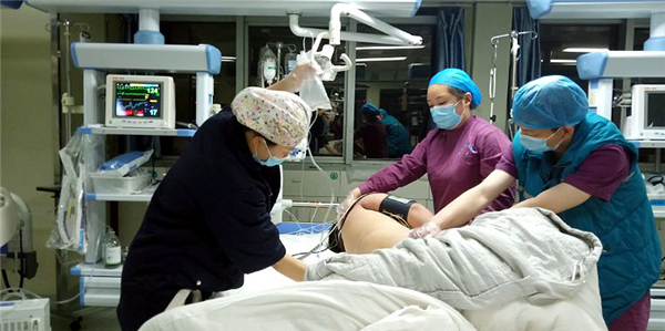 急救迅速展開。6時(shí)13分,急救車到達(dá)醫(yī)院急救中心。救援現(xiàn)場(chǎng),有著豐富急救經(jīng)驗(yàn)的董建洲醫(yī)生判斷患者為重度有機(jī)磷農(nóng)藥中毒且伴有呼吸衰竭癥狀。經(jīng)過一個(gè)多小時(shí)搶救,患者血壓出現(xiàn)平穩(wěn),但呼吸仍然困難,隨時(shí)有生命危險(xiǎn)。