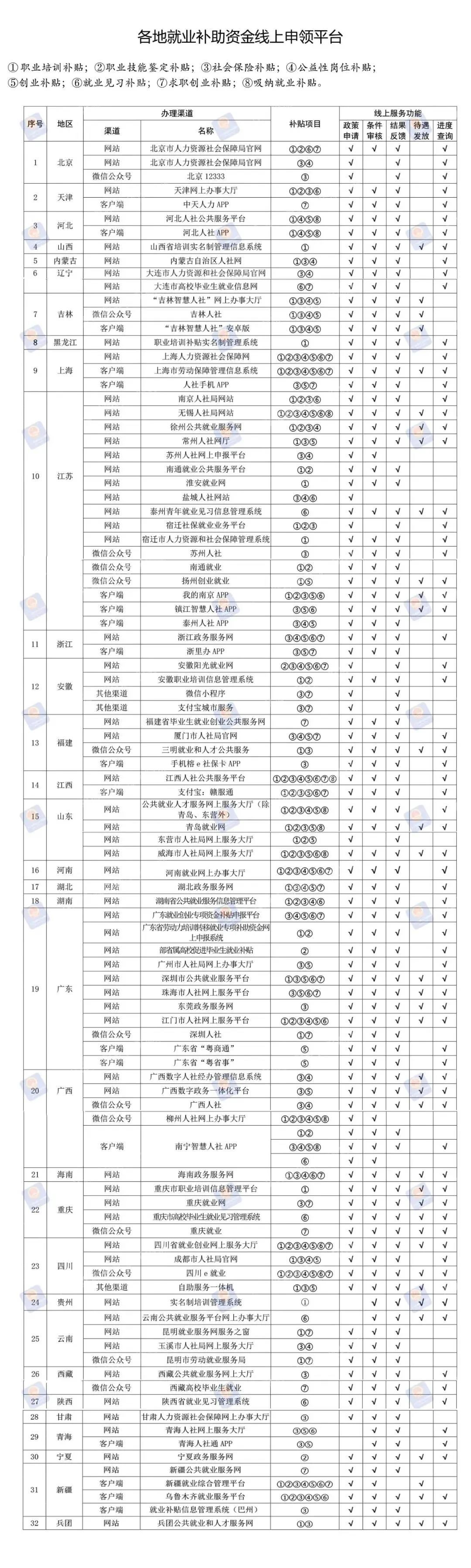 近日,人社部、財(cái)政部印發(fā)《關(guān)于發(fā)布就業(yè)補(bǔ)貼類政策清單及首批地方線上申領(lǐng)平臺(tái)的通知》,梳理了鼓勵(lì)企業(yè)吸納就業(yè)和支持勞動(dòng)者就業(yè)創(chuàng)業(yè)的就業(yè)補(bǔ)貼類政策清單,并匯總了各地線上申領(lǐng)平臺(tái)。