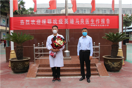 為彰顯榜樣力量,傳承抗“疫”精神,5月6日,項(xiàng)城市文化路小學(xué)邀請(qǐng)項(xiàng)城援鄂抗“疫”英雄代表項(xiàng)城市中醫(yī)院脾胃肝膽科護(hù)士馬良來(lái)校為廣大師生作報(bào)告,講述戰(zhàn)“疫”背后的故事,厚植愛(ài)國(guó)主義情懷。
