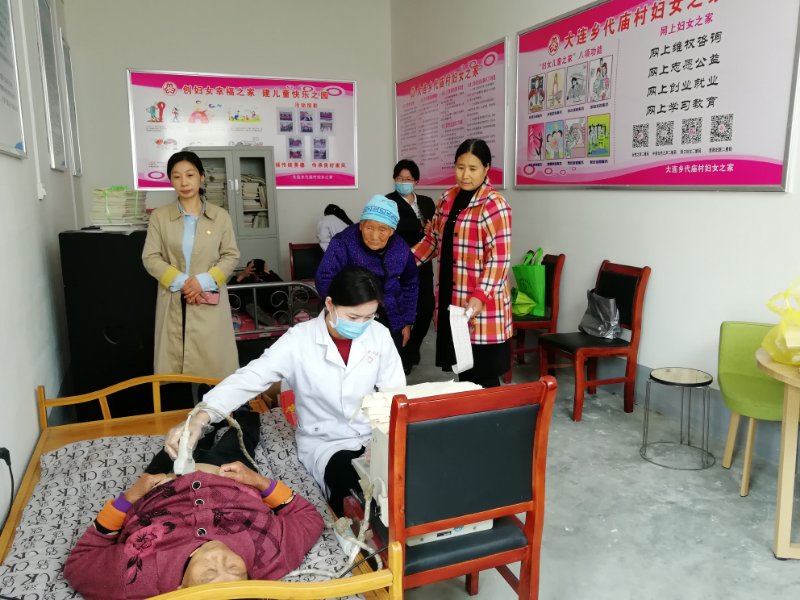 在代廟村黨員活動(dòng)室,區(qū)婦聯(lián)工作隊(duì)與高齡母親們歡聚一堂,婦聯(lián)主席張健代表駐村工作隊(duì)向高齡母親致以節(jié)日的問候和美好的祝福,她說,一個(gè)家庭的幸福離不開母親的辛苦操勞,特別是這些高齡母親,經(jīng)歷了艱苦的歲月,為子女和家庭披星戴月、受盡磨難,因積勞成疾造成晚年的行動(dòng)不便。區(qū)婦聯(lián)特意邀請大連鄉(xiāng)衛(wèi)生院的醫(yī)務(wù)人員來村里的婦女之家為高齡母親進(jìn)行測血糖、量血壓、做B超、做心電圖、號(hào)脈問診,用精湛的醫(yī)術(shù)為大家送上健康的關(guān)懷,確保讓母親們度過一個(gè)愉快的節(jié)日。