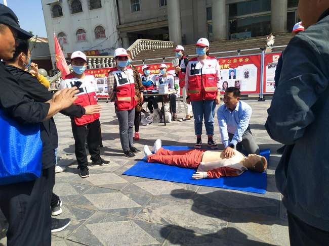 與此同時,該縣紅十字會還現(xiàn)場對廣大群眾傳授心肺復蘇等急救方法。
