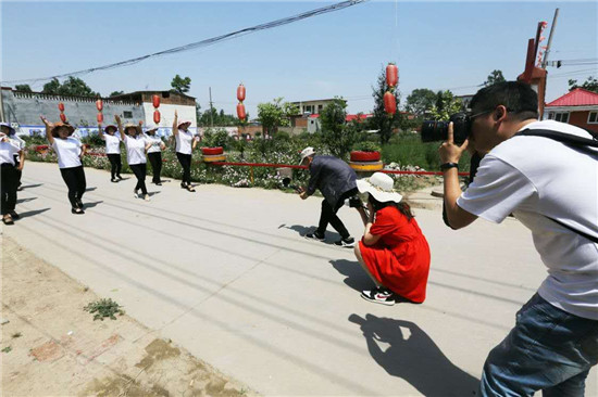 采風(fēng)期間,10多名專業(yè)攝影師奔赴奉母鎮(zhèn)前邵村、前于王村以及孝賢碑林等地,進(jìn)行實(shí)地探訪采風(fēng)。前邵村是當(dāng)?shù)赜忻膫鹘y(tǒng)村落,村里文化氛圍濃厚,先后走出10多位戲曲方面的國家一級演員。在該村,一支業(yè)余的文藝宣傳隊(duì)引起攝影家們關(guān)注的目光。大家即興表演了兩三個(gè)節(jié)目,引得攝影家們極大興趣,不停按下快門拍攝。