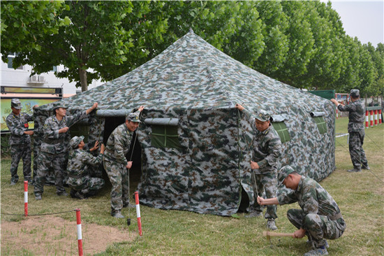在這些民兵當(dāng)中,擔(dān)負(fù)醫(yī)療救護(hù)的綜合勤務(wù)排更是不簡(jiǎn)單。他們是來(lái)自周口長(zhǎng)城醫(yī)院的醫(yī)護(hù)人員,在今年的抗疫戰(zhàn)中,他們充分發(fā)揮基層黨員民兵作用,無(wú)論白天黑夜,冒著雨雪嚴(yán)寒,在抗疫一線的卡點(diǎn)上都留下了他們迷彩身影。趙軍濤是來(lái)該醫(yī)院的醫(yī)護(hù)人員,同時(shí)也是一名退伍老兵,他說(shuō),新時(shí)代的強(qiáng)軍戰(zhàn)歌已經(jīng)奏響,要以此次集訓(xùn)為契機(jī),不斷強(qiáng)化練兵備戰(zhàn)的緊迫意識(shí)、危機(jī)意識(shí),以飽滿(mǎn)的政治熱情投入到緊張的訓(xùn)練中,用優(yōu)異成績(jī)?yōu)榇▍R區(qū)的后備力量建設(shè)增光添彩。