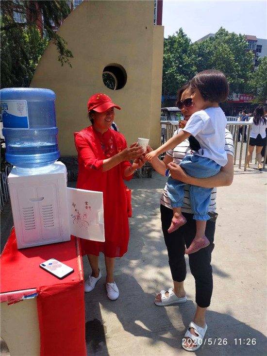 6月3日,在周口中心城區(qū)七一路上的周口人民公園附近,由市慈孝文化促進(jìn)會(huì)的志愿者設(shè)立的免費(fèi)飲水點(diǎn)前,不少市民正在接水喝,為炎炎夏日里的市民送上一份清涼。 記者 張洪濤攝