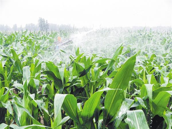 ② 6月4日,沈丘縣周營鎮(zhèn)黃孟營村農民在用小型自動噴機械噴灌春玉米。 謝辛凌 攝