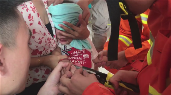 到達現(xiàn)場經(jīng)詢問得知,小男孩由于貪玩,將一個細長鋼管卡在了右手大拇指上,小男孩的家人嘗試了一些方法無果后,向消防救援大隊請求了幫助。由于時間稍長,小男孩的手指已經(jīng)浮腫,不停的哭泣,消防指戰(zhàn)員一邊尋求解決方法一邊安慰其情緒。經(jīng)觀察后,指戰(zhàn)員首先利用斷線鉗將鋼管剪斷,然后用擴張器小心翼翼的進行擴張,經(jīng)過2分鐘緊張救援,成功將鋼管取下。